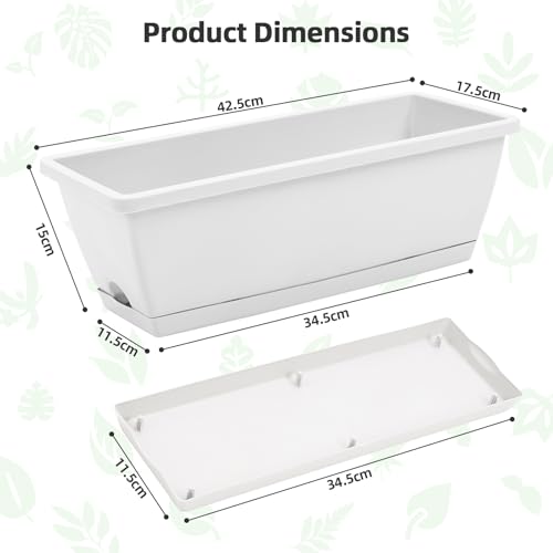 - 🌺 Stylish And Practical: 5PCS pale white plastic planters are the first choice for gardening enthusiasts. The overall size of the planters is 42.5L*17W*15H cm, the quantity and size can better meet your home gardening needs, allowing you to experience different plant growing at once.