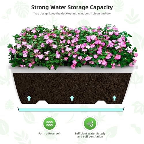 - 🌻 Draining Holes And Tray Design: The rectangle planter is designed with multiple open drainage holes at the bottom, which helps to keep the soil drained and ventilated, and promotes vigorous plant growth. The included tray can store water and can be removed at any time, very easy to clean and convenient to place on the windowsill.