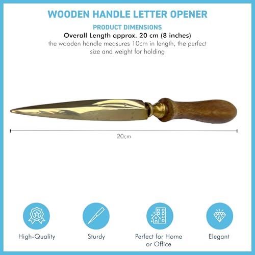 - MEASURES 20 CM (8 INCHES) IN LENGTH, with a 10 cm wooden handle. The blade is safe to handle, with a pointed tip for easy envelope insertion.