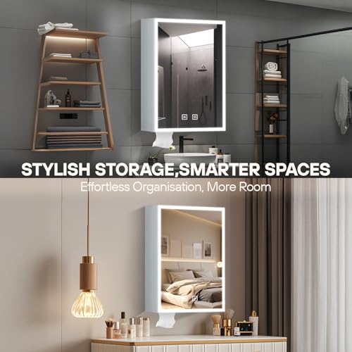 - Anti-Fog & Waterproof:Say goodbye to steam and condensation with the built-in demister, ensuring a clear view even after the hottest showers. With an IP44 waterproof rating, this bathroom cabinet wall mounted is designed for humid environments, making it a reliable choice for bathroom mirror cabinets in washrooms, ensuites, or family bathrooms.