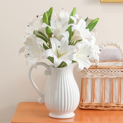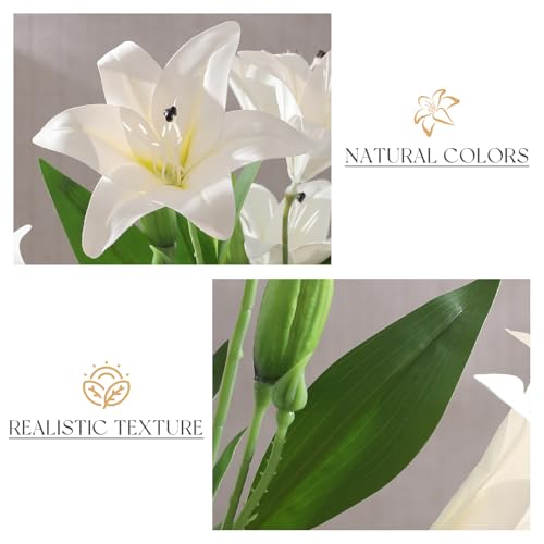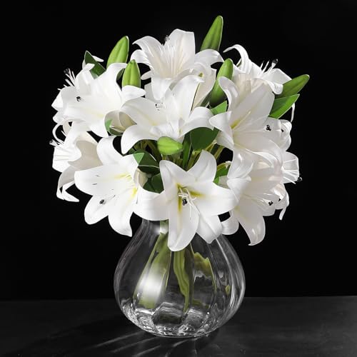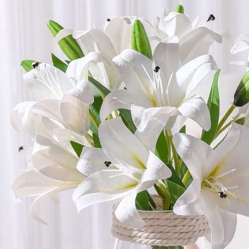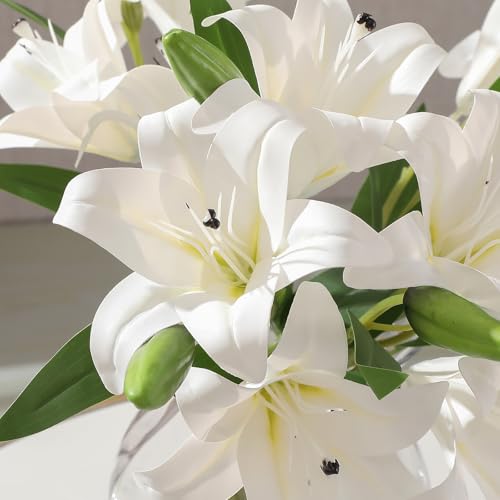 - What You Get:The sturdy cardboard packaging ensures that every delicate lily is delivered intact and undamaged.The package contains 12 blooming artificial lilies,12 buds,and 24 leaves.The combination of 6 lilies looks exquisite and full of vitality.Fake lilies are an ideal home decoration that enhances the elegant beauty of your room.