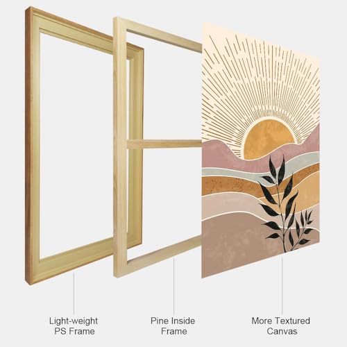 - Framed Canvas Boho Wall Art The size of boho wall decor set is:12×16"x3.With its nature abstract illustrations, simple geometric lines, and a combination of orange and beige colors, it presents a strong Bohemian style.These mid-century modern wall art prints would be a great choice for housewarming parties or as gallery decoration