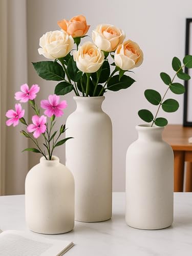 - 🌿 Stylish Trio Design – This coordinated set of 3 ceramic bud vases offers a clean, minimalist aesthetic with a touch of rustic elegance. Perfect for styling coffee tables, console shelves, or windowsills.