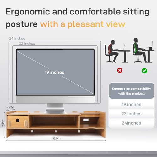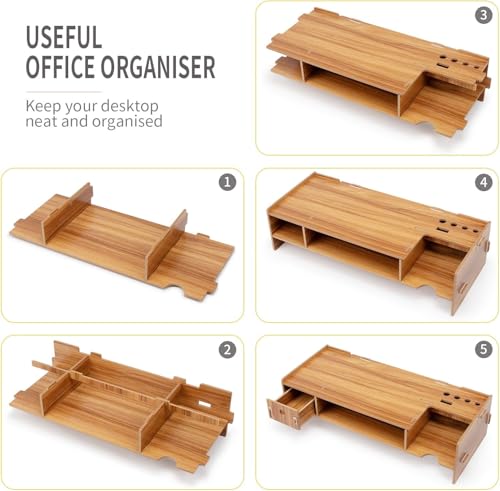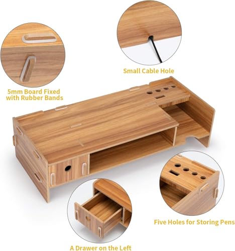 - SPACE SAVING & DESK ORGANISED: The monitor stand provides papers, keyboard, mouse, pens, receipts storage space; cables management and drawer for notepads, which will save valuable desk space.