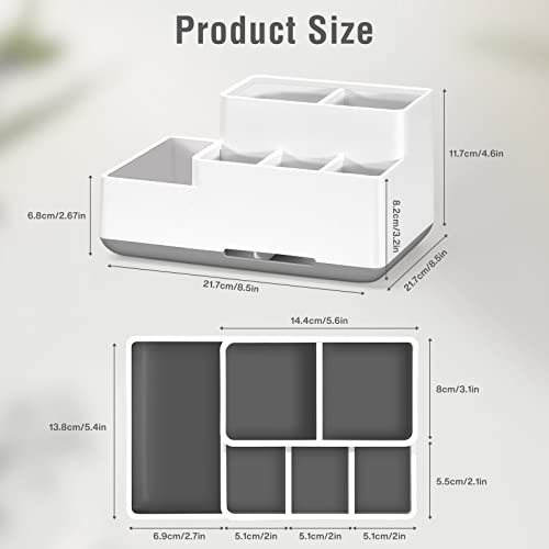 - Large Capacity Organizer For Home: The toothbrush holder has 6-compartment for providing enough capacity. The small compartment fits toothbrushes, razors, and comb. And a large compartment can place a facial cleanser, makeup remover, and skin care products. Easily solve your storage troubles!