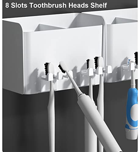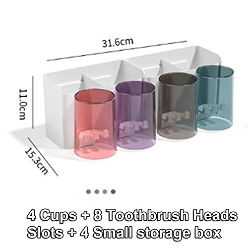- 【Multifunctional Combination】A range of products, including: 4 toothbrush cups, 8 slotted toothbrush heads, 4 hollow storage compartments, storage compartments can hold all toothpaste, combs, razors, facial cleanser, etc. Perfect storage to keep your toiletries clean and tidy.