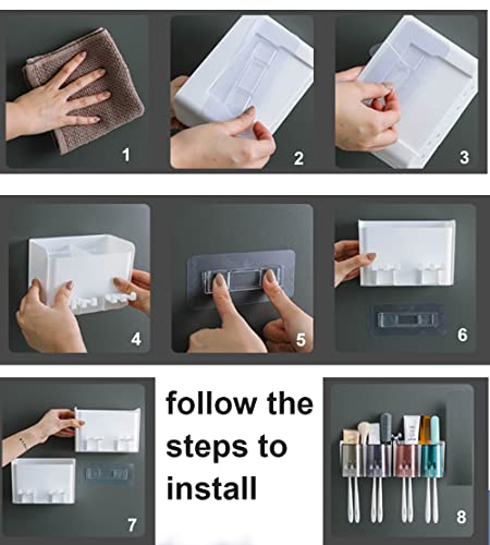 - 【Easy to Clean】Toothbrush holder storage compartments, round holes in the bottom row are designed to leak water to keep your belongings ventilated and dry. You can clean the toothbrush holder from the adhesive strip. It has a large storage capacity, convenient and unique.