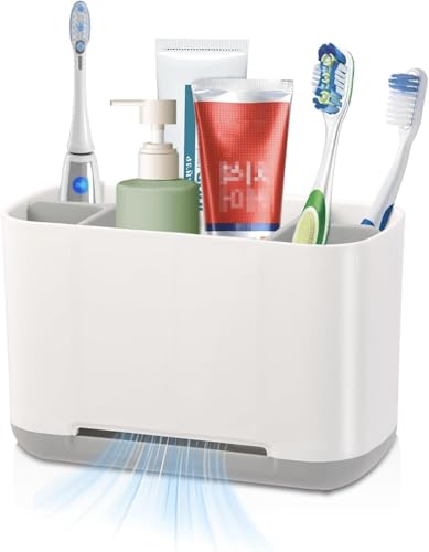 - Durable and reliable with drainage function: Bathroom organiser Made of high-quality PP plastic material, it has good toughness and wear resistance, and can withstand bumps in daily use. And toothbrush holder has practical drainage function, The specially designed drainage hole at the bottom can timely drain the residual moisture in the storage box, keeping the stored items dry and clean.