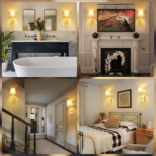 - Gold Wall Lights with Remote Control — Included remote control makes it easy to operate, allowing you to quickly turn the wall sconces on and off remotely, switch between warm, natural, and cool light (3000K-4000K-5000K-6000K), and choose from 5 different brightness levels (20%-40%-60%-80%-100%). The battery powered wall light remembers the last brightness setting when turned on again, eliminating the need to repeat the setting.