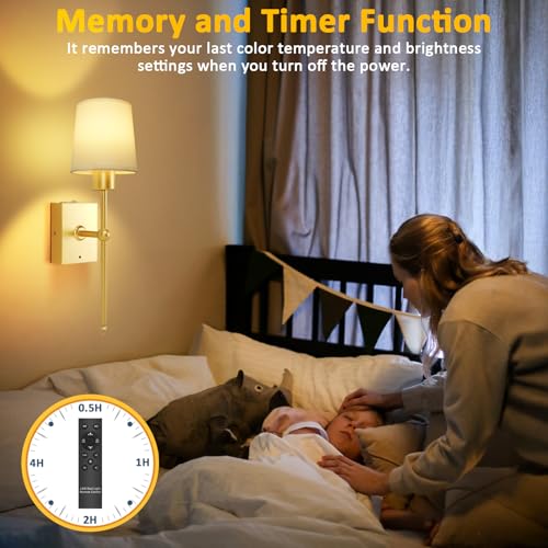 - Easy to Install & Timer — The wireless wall lights is made of sturdy metal with a white fabric shade for a cozy and elegant atmosphere. We provide detailed instructions and installation accessories, you just need to follow the steps to quickly install the wireless wall sconce in the desired location, and it has a 4-step timer to automatically turn off the light after a specified period (0.5h-1h-2h-4h).