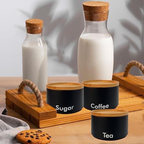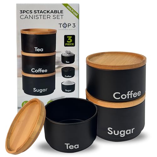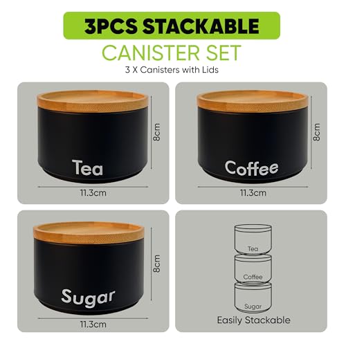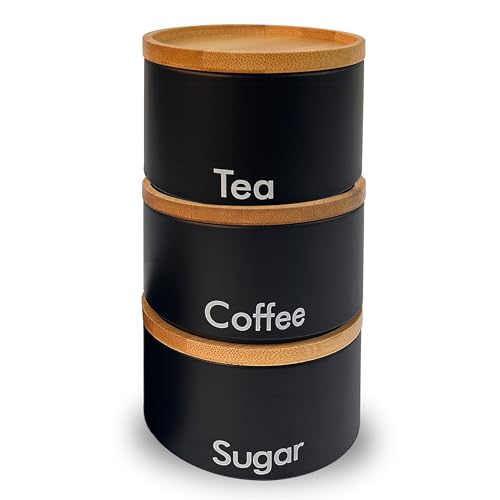 - ★ KITCHEN STORAGE & ORGANISATION: An easy, safe and stylish way to store your Tea, Coffee and Sugar. Keep your favourite ingredients fresh and tidy in our stackable matching 3-piece kitchen canister set.