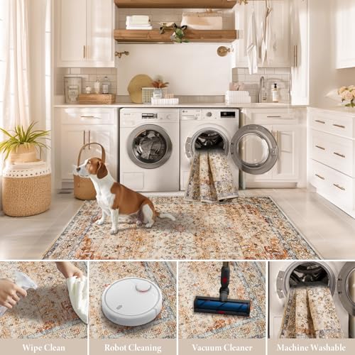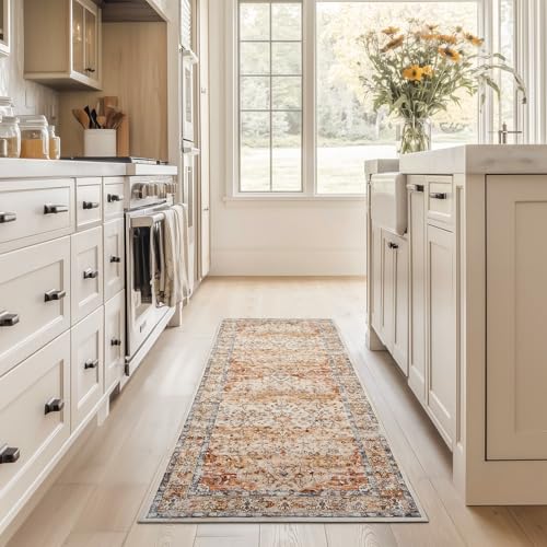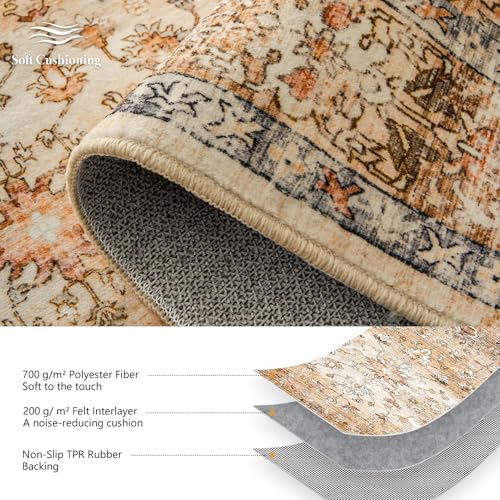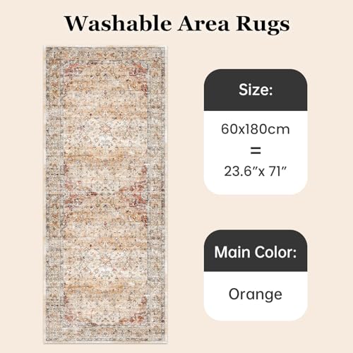 - Non-slip Backing & Door-Friendly Thickness: Equipped with a non-slip backing, the vintage rug stays securely in place without curling or sliding. Its thin profile makes it easy to fit under furniture or doors, and even compatible with robotic vacuum cleaners – no need to lift or move it around frequently.