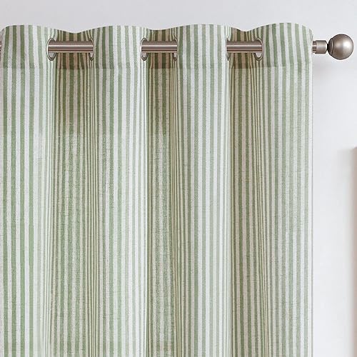 - Ready Made: Package includes 2 panels of linen blend stripy window curtains, each panel measuring 50"W x 90"L. Each panel has 8 metal grommets with a diameter of 1.6", which works well with tension rods or normal rods, easy to install and slide. It is recommended to use a rod with a diameter of 1 inch or less.