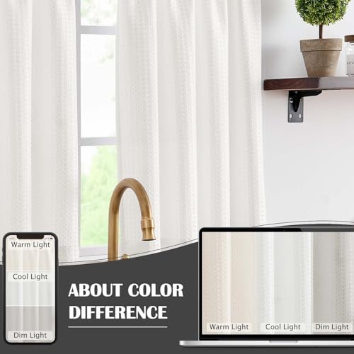- Waffle Weave Design: These kitchen curtains are made of waffle woven textured plaid fabric, which is very delicate and beautiful. Simple pleats on the rod pocket add an elegant look. The cafe curtains are richness in color, working well with a variety of decor styles.