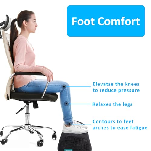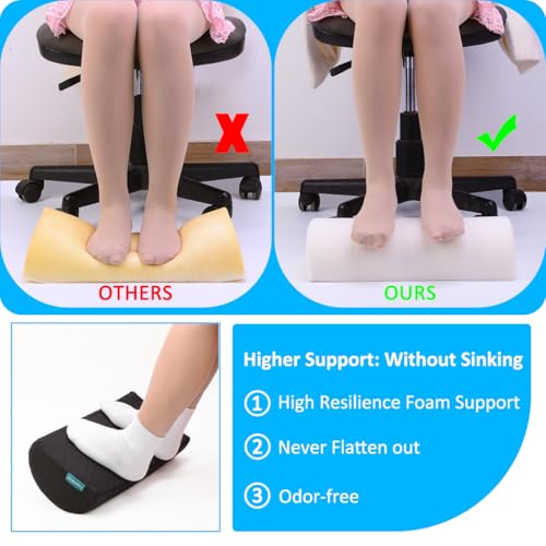 - 【Premium Material】We use higher-density memory foam which has excellent elasticity and firmness that can perfectly fit your feet soles and provide premium support. Our footrest brings the best soft comfort while supporting and has better resilience and your feet will never sink into our under desk footrest