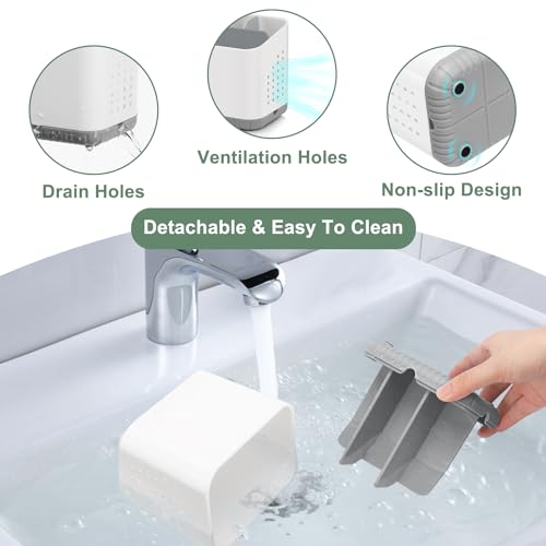- Detachable & Easy To Clean: The toothbrush holder for bathroom is detachable both upwards and downwards, making it convenient for cleaning. And there are also 4 drain holes at the bottom of the toothbrush holder caddy, so you don't have to worry about water accumulation in the toothbrush holder.