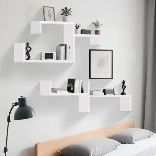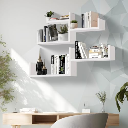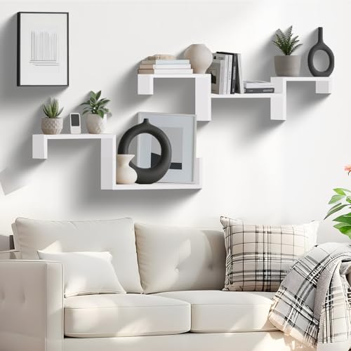- 【MULTIFUNCTIONAL WALL SHELVES】The white floating shelves can be wall mounted as book shelf in your bedroom,displaying artworks & framed photos in your living room,storing shampoo & rolling paper in your bathroom,stacking spices & jars in your kitchen,there are endless possibilities in white shelves function for you to explore.