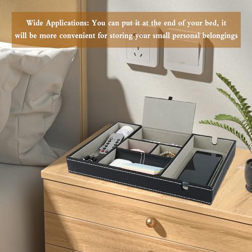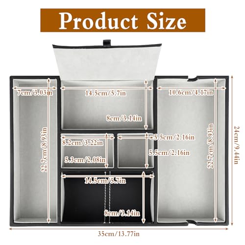 - High-quality material: the bedside organiser is made of high-quality high density board PU, which is very robust and durable and easy to maintain. There is a design with a lid in the small compartment, this compartment is used to store your jewellery and can effectively place dust. Built-in velvet brings you a comfortable hand feeling.