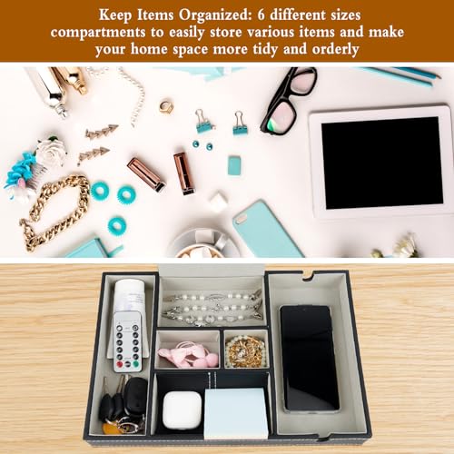 - Unique divided design: the desk organiser is equipped with 6 compartments, each compartment has its own size, you can store it according to your needs. Your mobile phone, keys, watches etc. have a separate space from now on, which is convenient for you to quickly find and take and put accurately.