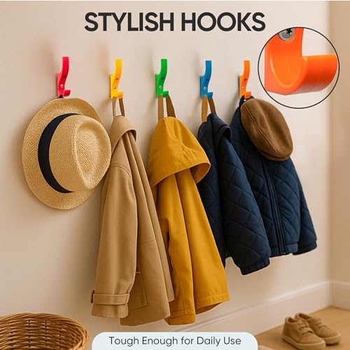 - Colourful & Stylish: Classic Rainbow selection of vibrant colours, these hooks brighten up any space, making them ideal for kids’ rooms, classrooms, and home décor while serving as practical hangers