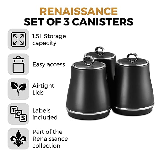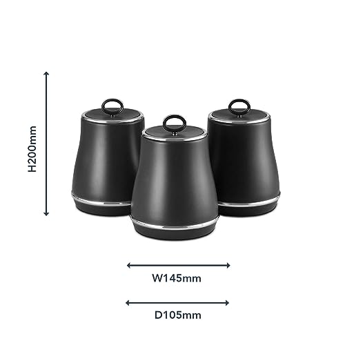 - 1.5L STORAGE CAPACITY: Perfectly holds up to 1.5L of contents ensuring you never run out of your favourite refreshments. Each canister measures H20 x W14.5 x D10.5cm and is ideally suited to store tea, coffee and sugar, however can also be used for pasta, rice etc.