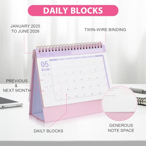 - Reasonable Size: Our desk calendar 2025-2026 measures about 19.00X16.50X8.00 cm/7.47X6.48X3.14 inches, is lightweight, takes up little space, and is easy to store. With a charming pink color, it can enhance any interior style while helping you stay organized. It is ideal for business travel, remote work or recording important dates when you are away from home.