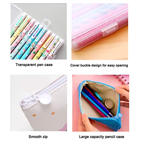 - ☀ Stationery Set—Pack of 10pcs, including 10pcs ballpoint pens and 1pcs clear pencil case. 10 colors(Pink, Green, Red, Black, Orange, Blue, Purple, Dark Blue, Light Blue, Light Green)
