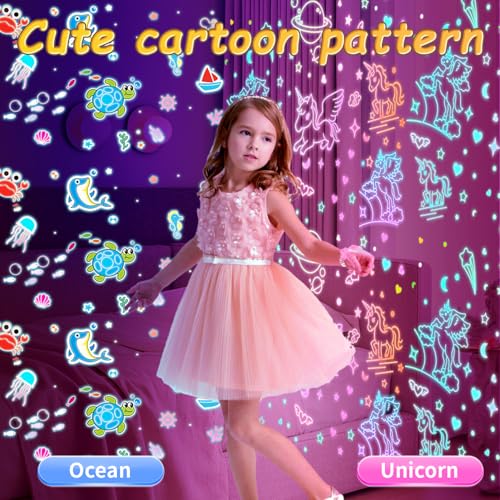 - 3 Magical Themes for Little Dreamers : After unpacking, simply open the lampshade and choose from three enchanting themes.Transform your child's bedroom into a dreamland! This unicorn night light projector features 3 enchanting projection films: a magical unicorn adventure, a sparkling starry sky, and a mysterious underwater world. The perfect gift for girls aged 1-10, it inspires imagination, wonder, and bedtime joy. A must-have birthday gift or Christmas present for little dreamers!