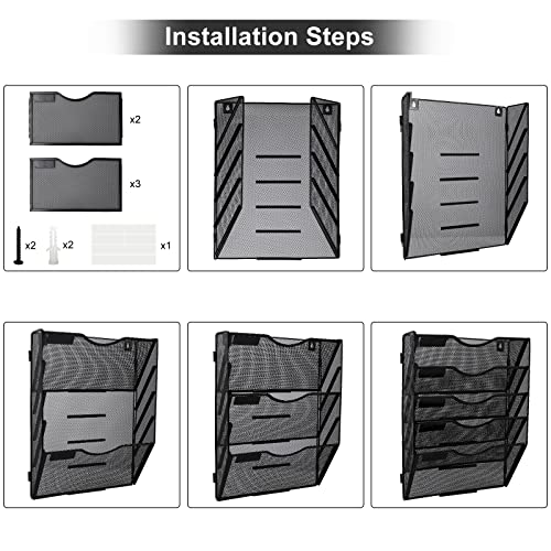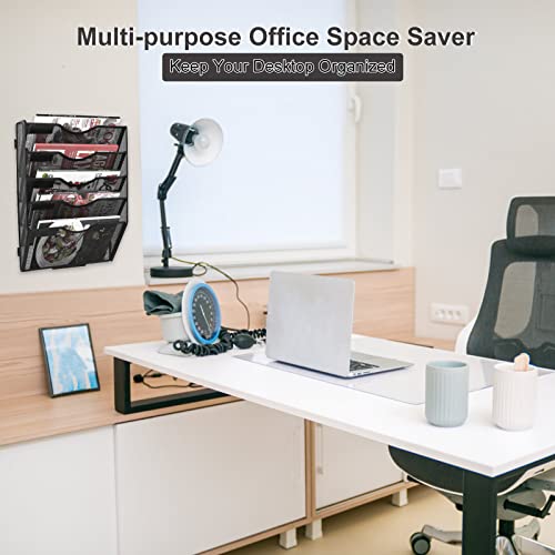 TQVAI 5 Pockets Wall File Holder, Mesh A4 Wall Mounted Document Holder, Hanging Wall Magazine Storage Rack, Desk Stationary Tidy Organiser in Tray for Office School Accessories, Black