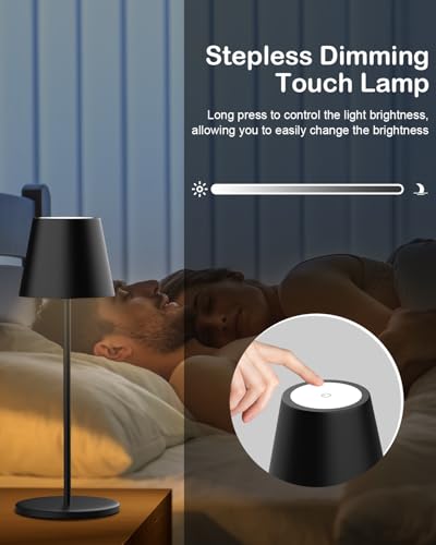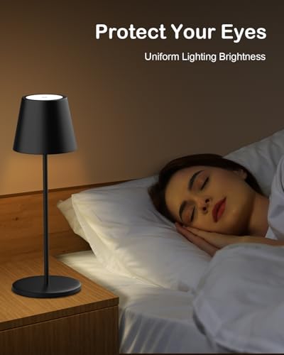- 【Touch Dimmable Table Lamp】: Just gently touching the top head of the rechargeable table lamp can control the brightness from 5%-100%. Stepless brightness dimming can provide you with more choices to meet unlimited usage scenarios needs. (When you turn on 3000K bedside table light again, it will record the last adjusted brightness)