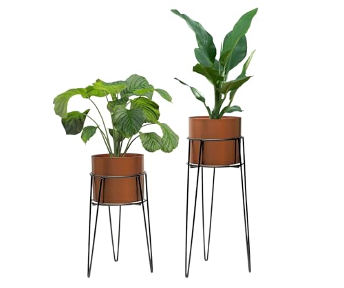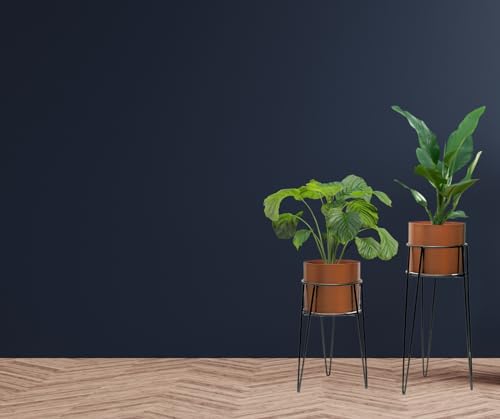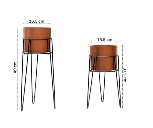 Trendi Set of 2 Planter Pots with Metal Stands, Flower Pots Living Room Decor | Copper/Bronze Plant Pot for Indoor/Outdoor Flower pot Plant Herb | Garden Container | Organizer decor (Modern Design)