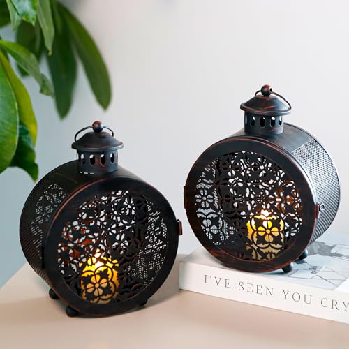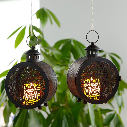 - 【Versatile Placement and Hanging】 – The lantern measures 14cm Lx 8cm Wx 19cm H, which is small and flexible (not including candles). With support feet at the bottom, it can be placed firmly on the desktop, bookshelf, and windowsill. There is a hanging ring on the top, which can be easily hung on the ceiling, branches or courtyard. It is suitable for festivals, parties, weddings, and creating a romantic atmosphere.