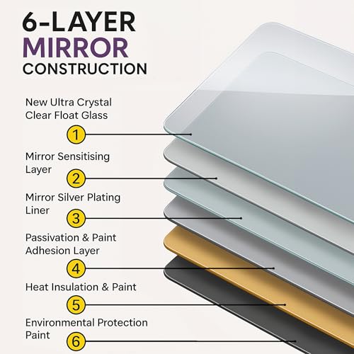 - HIGH QUALITY GLASS: Made from premium materials, this mirror features high-quality glass for exceptional clarity, durability, and a flawless reflection.