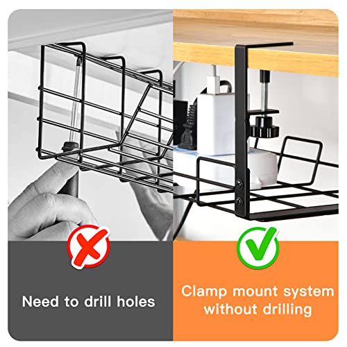 - No Drills, No Marks, Just Clamps – No holes need to be drilled on your desk. Our under desk cable management is designed to clamp directly to desk frames, you can simply rotate the black knob by hand to clamp the cable rack tightly to your desk instead of drilling holes. Our cable management tray solution also doesn’t permanently leave any mark on your desk and can be easily removed to a different location.