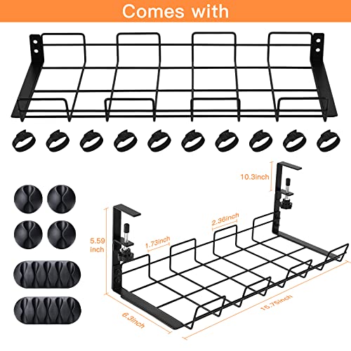 - 1 Pack of Large Capacity Cable Basket -1 pack of Under table cable management kit contains 1 cable tray, 6 cable clips and 10 cable ties. This computer cord organizer is great for you not only around your desk table, ut also good to be used in the kitchen and outdoors. Tidy and beautify your office and home.