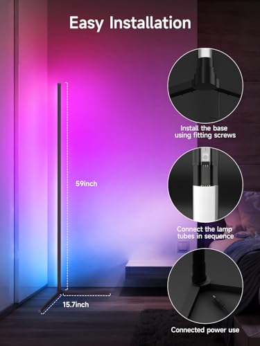 - Bright Charming Light Show: Corner floor lamp build-in premium RGB LED light strip, with low power consumption, no glare, more delicate lighting, environmental protection and safer. Choose from a variety of colors and dynamic scene modes to create the perfect ambiance for any room in your home, Immerse yourself in a real fantastic lighting experience.