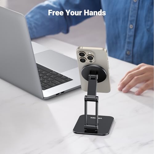 - Foldable & Portable: UGREEN Magsafe Phone Desk Holder can fold flat, easily stored in travel bag and take around. Compact and lightweight design makes this iPhone Magnetic Stand adds no burden to your travel.