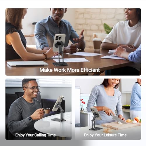 - Stable & Sturdy: Solid aluminium alloy construction offers reliable weight to carry your phone and hold it without wobble. This Magnetic Phone Mount is a safe and trusted cradle for phones/mini tablets. Compared with plastic phone holders, Aluminium Phone holder is more durable and lasts longer. Plus, the Magsafe Phone Stand features rubber pads on the bottom of the stand and where the phone sits to prevent slipping issue and greatly improve stability.