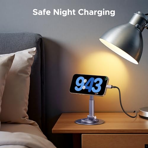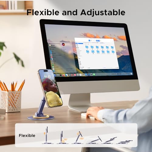 - Adjustable Angle and Height: With a 360-degree rotating base and dual 180-degree flexible pivots, UGREEN Magsafe iPhone Desk Stand enables you to orient your phone at any angle.The Magsafe Phone Holder also features a telescopic rod for customized height up to 15cm. Choose an optimal angle and height for comfortable viewing.