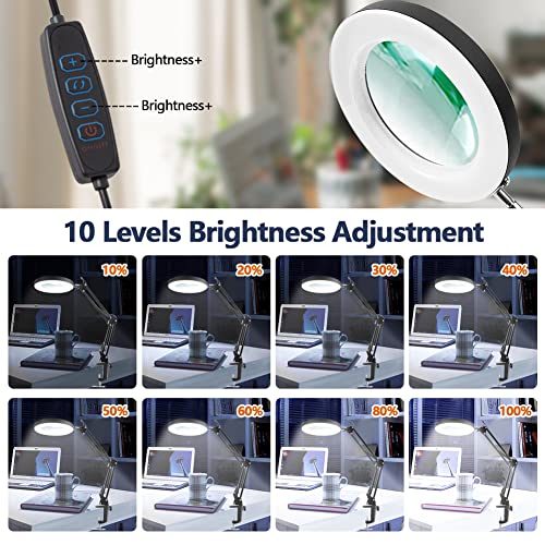 - 【3 Light Modes & 10 Brightness Adjustable】The magnifying glass with light has 3 light modes: Warm, Nature, White. And every color has 10 brightness levels adjust(10%-100%), it meet your different needs about light color and brightness.
