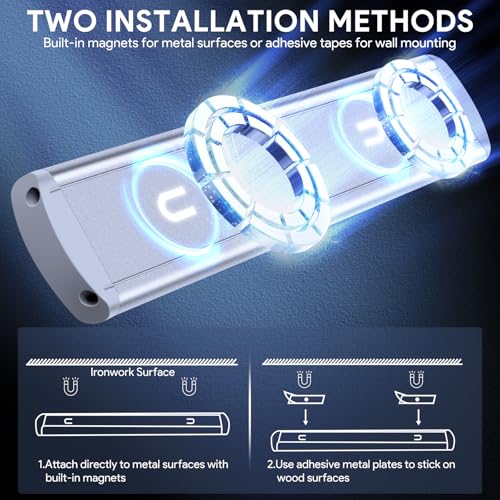- Hassle-Free Installation and Portability: Featuring a slim 9.5mm body and magnetic back, these wireless lights can be easily attached to magnetic metal surfaces or mounted on non-iron surfaces using included strips. Easily removable for recharging or repositioning, making them ideal for any temporary or permanent lighting needs.
