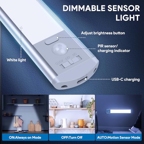 - Advanced Motion and Daylight Sensor: Equipped with a high-sensitivity motion sensor, these lights automatically turn on when movement is detected within a 3m range in low-light conditions, conserving energy by remaining off in well-lit environments. Perfect for closets, under cabinets, wine cabinets, and display lighting.