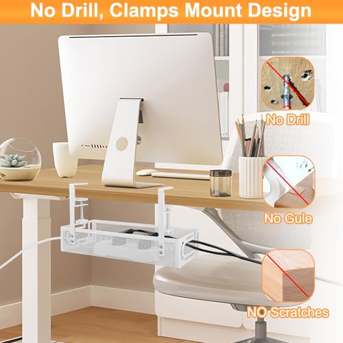 - No Drill, Easy Installation – Instead of damaging to your desk, our under desk cable management tray can be hanged directly to desk frames and change its position easily as you like, unlike others screw installation. Ideal for home offices, gaming setups, and workstations.