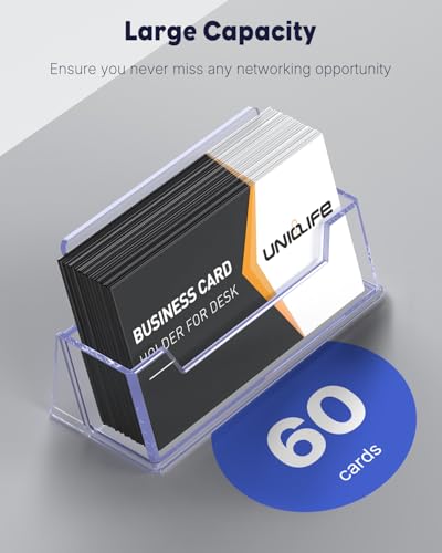 - Large Capacity: Size: 10 L x 3.9 W x 5.5 H cm. With a generous slot, each card stand accommodates up to 60 standard business cards. (NOTE: Capacity varies with card thickness.) Never miss a networking opportunity with ample card storage