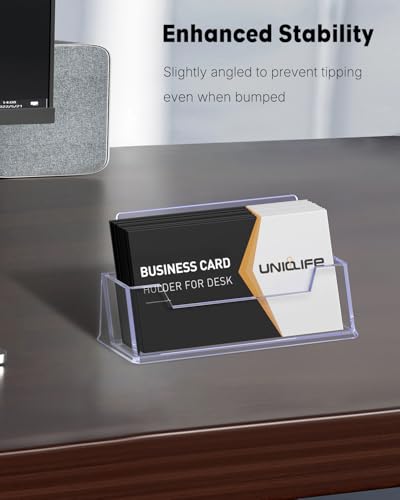 - Clear & Robust Acrylic: Crafted from reliable acrylic, the business card display stand combines sleek transparency with exceptional sturdiness. Crystal-clear design showcases every detail of the cards, adding a professional touch to any desk