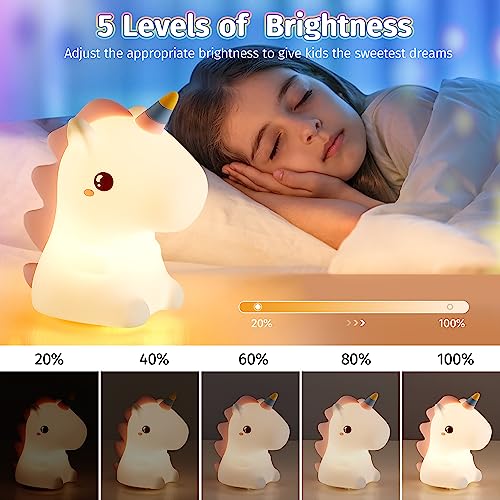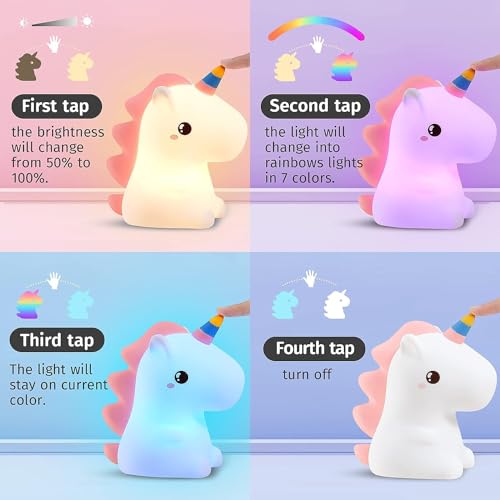 - 🦄UNICORNS GIFTS FOR GIRLS: Unicorn symbolizes bravery, nobility, luck, purity. In girl's mind, there is a unique unicorn guarding her. Unicorn toys/unicorn night light kids night light will better express yr love for yr daughter, granddaughter, niece. Unicorn night light kids are the perfect bedtime buddies, traveling companions unicorn night light kids night light/ baby night light newborn/unicorn toys/unicorn gifts for girls/kids lamp is also as a cute girls room decor, girls bedroom accessories, unicorn gifts for girls. When kids receive this cute night light kids/ unicorn night light kids/ baby night light newborn, u will see their sweet smiles. Take this super cute unicorn toys home!