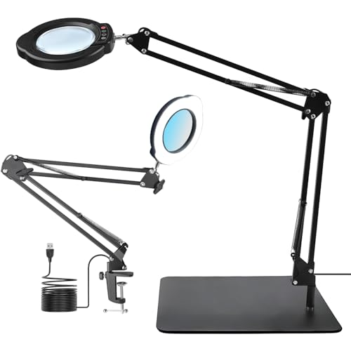 - 5 Color Modes & 10 Stepless Dimmable: Built-in exclusive led hi-tech chip-set enables this magnifying glass with light and clamp hands free to realize 5 color temperature options (warm light 3000K, 3500K, natural light 4300K, 5500K, cool light 6500K) and 10 stepless dimmable (from 10% to 100%). 84 PCS LED Beads features high colour rendering, no flicker, memory function and more eye care for use. Various lighting options could meet your different needs for use, such as reading, sewing, painting, engraving, drawing, pottery, other close work in a comfortable and your favorite light source