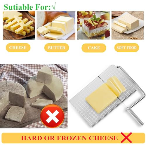 - 【Durable Stainless Steel Cheese Slicer】Enjoy effortless slicing with our upgraded cheese slicer. Made of heavy duty stainless steel, it ensures precise cuts and long-lasting durability for block cheese, butter, sausage, and ham.