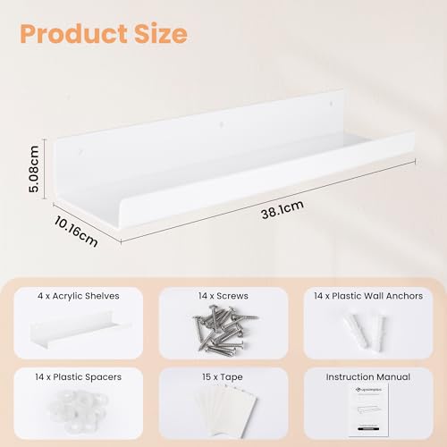 - ROOM DECORATION AND ORGANISATION – upsimples white shelves set of 4, same size (38*10cm ). Help you use wall space more effectively for storage and organisation. You can use them anywhere in your bathroom, bedroom, living room, kitchen and so on.