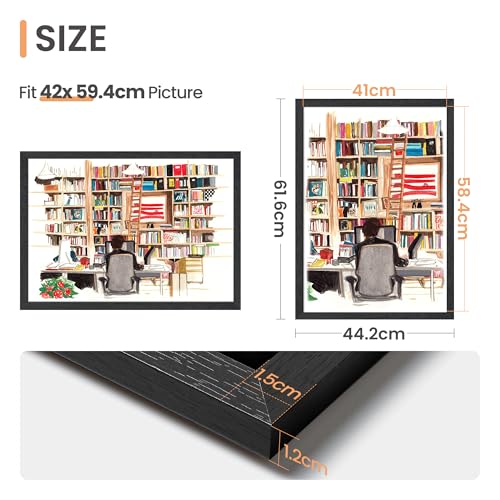 - SIZE DESIGN: Black picture frame perfects for photo A2(42X59.4 cm). The display size will be 0.5inch smaller than the photo size to better stable the photo and prevent it from falling off.